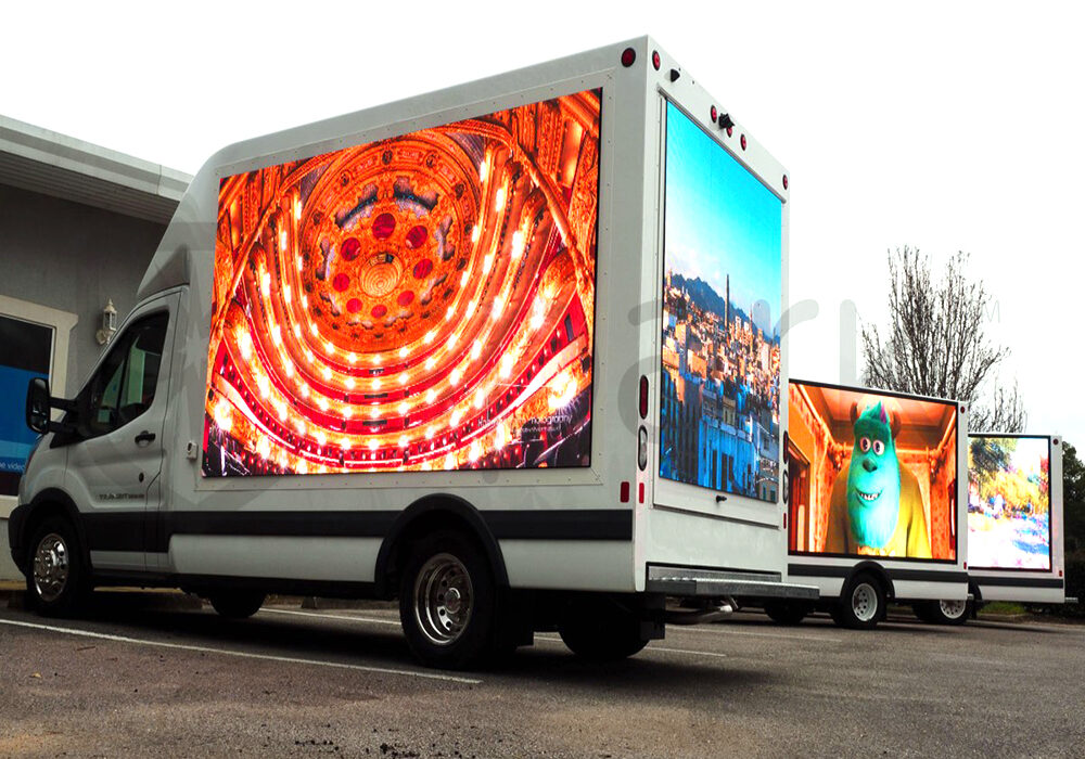 Bao gồm các màn hình LED được gắn trên xe buýt, taxi, xe tải, hoặc các phương tiện giao thông khác.